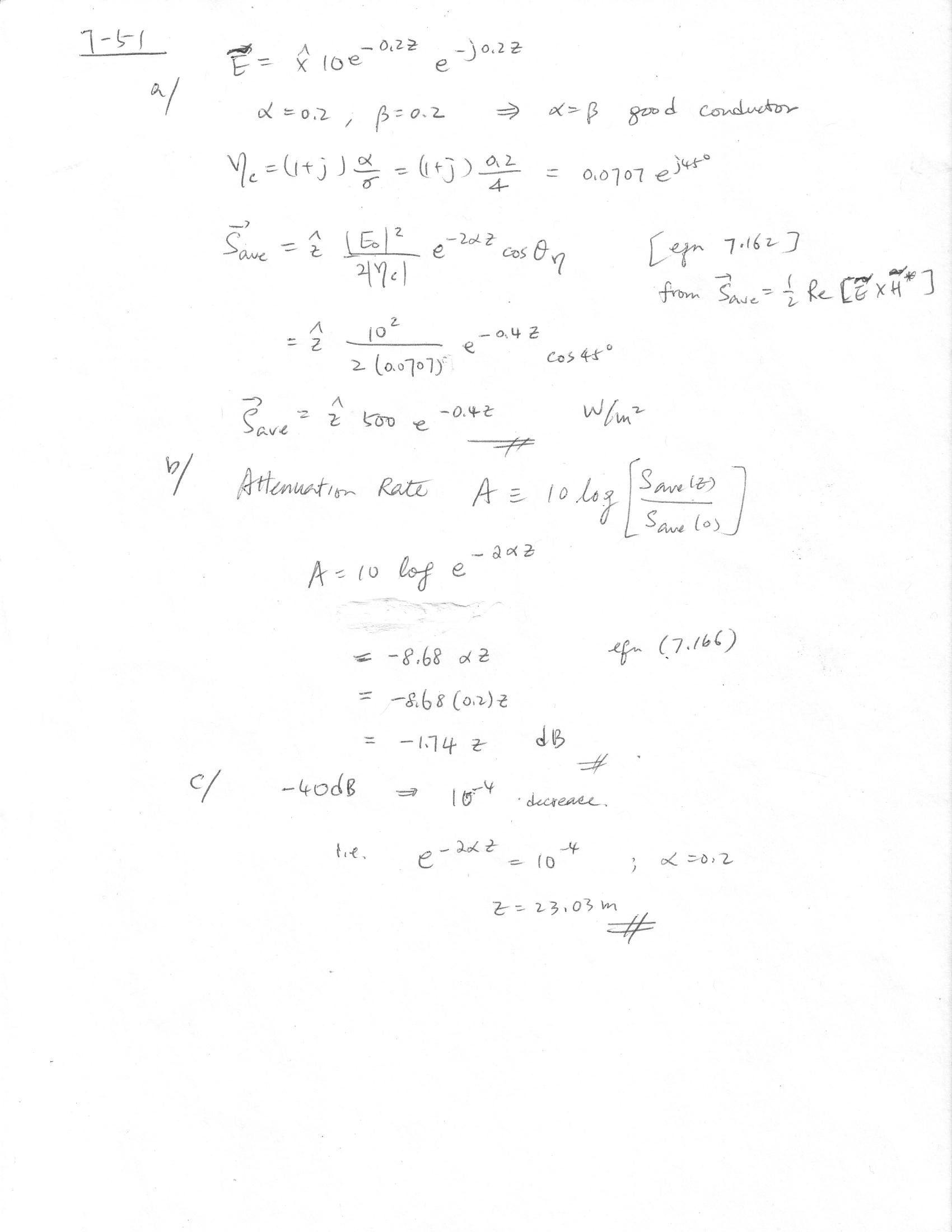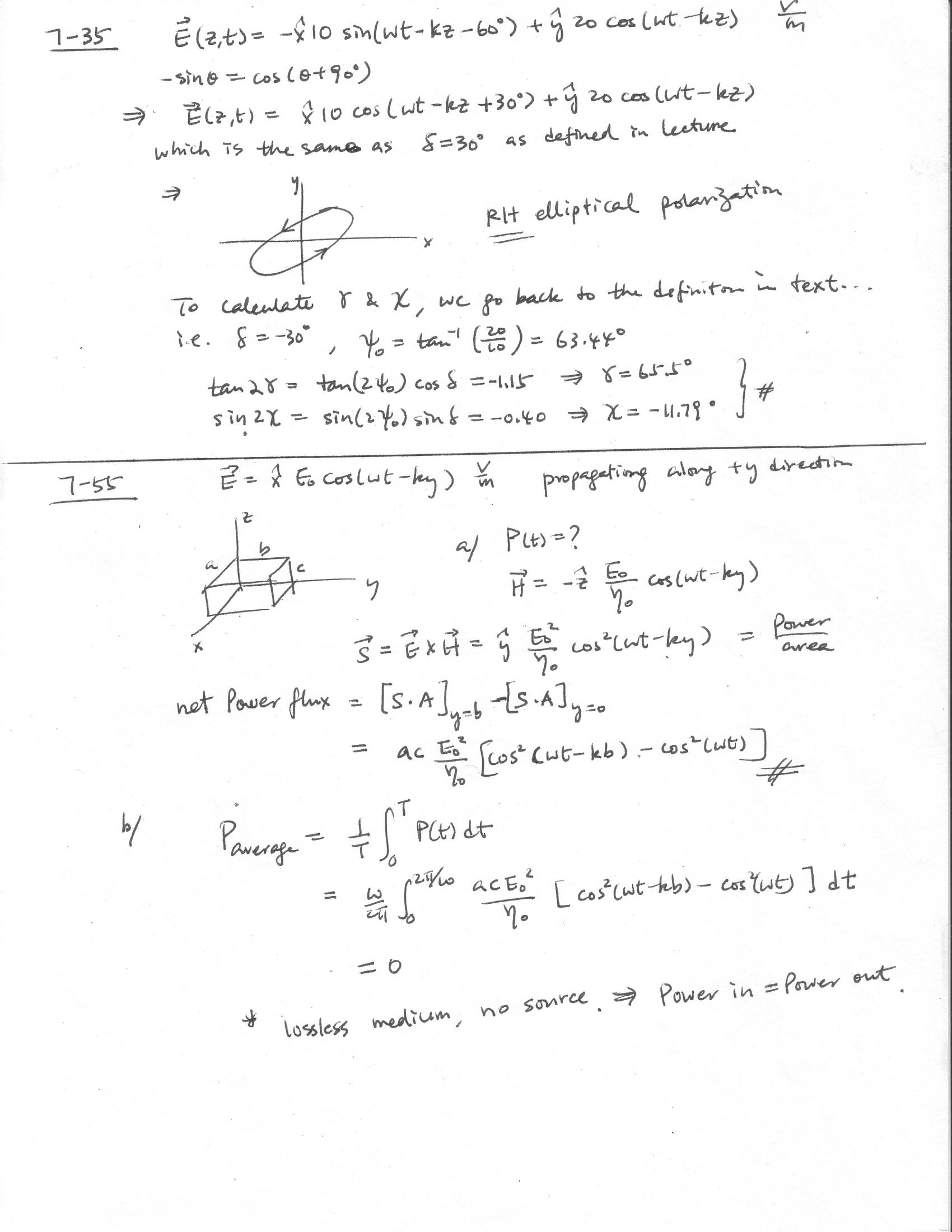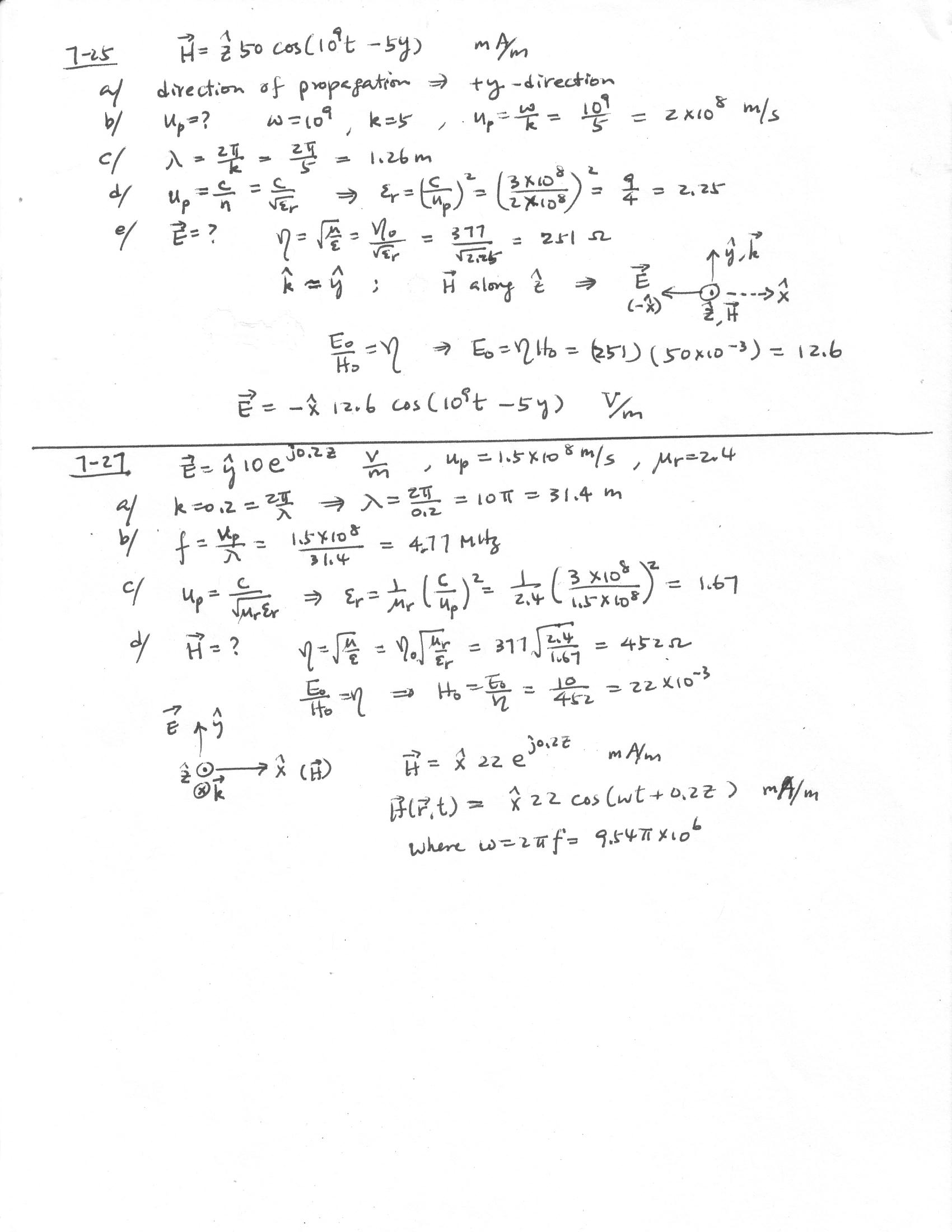 - HW#10: Ch. 9 # 4, 15, 19, 20, 21, 26, 28, 30, 13, 18, 27 + 2 problems in Lossy Medium